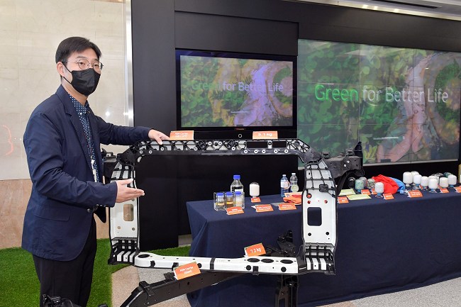 자동차 경량화 플라스틱 소재에 대해 설명하고 있다. (사진. SK지오센트릭)