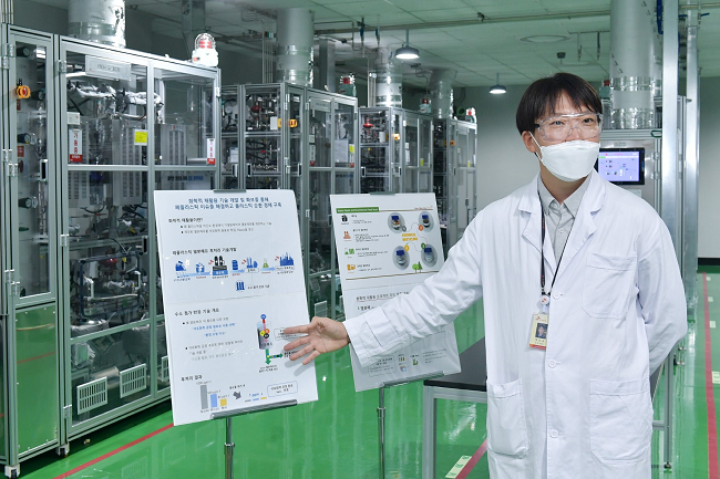 폐플라스틱 열분해 후처리 기술에 대해 설명하고 있다. (사진. SK지오센트릭)