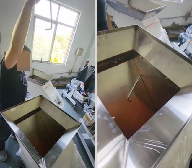 TH테크의 저속분쇄기는 분쇄품 투입구에 자석이 적용돼 금속 이물질이 투입되는 것을 완벽히 차단한다. 사진은 금속 이물질을 떨어뜨려 저속분쇄기 한쪽 면에 붙는 모습을 테스트한 장면. / 사진. TH테크