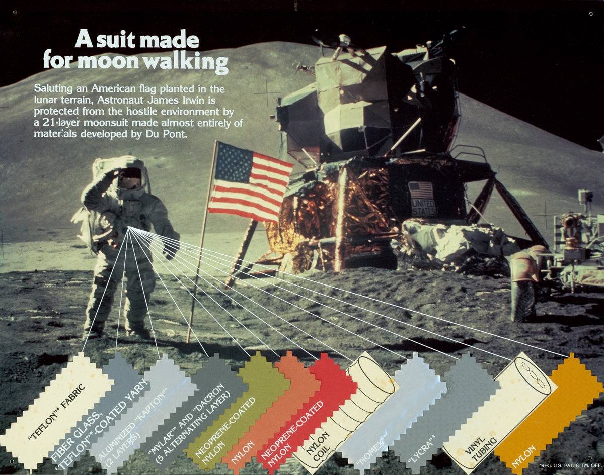 아폴로 11호의 달 탐사 임무를 위해 제작된 우주복은 21개 층 중 20개 층에 듀폰™ 노멕스®(Nomex®) 섬유, 캡톤®(Kapton®) 폴리이미드 필름 등 듀폰이 발명한 소재가 사용됐다. 달 표면에 닿은 첫 번째 소재가 캡톤® 이었고, 달에 꽂은 성조기는 듀폰의 나일론으로 만들어졌다.
