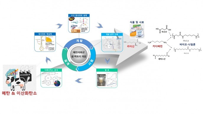 메탄자화균은 상온·상압의 조건에서 메탄을 알코올, 유기산, 올레핀 및 바이오폴리머 등의 고부가가치 산물로 대사한다. 연구팀은 메탄자화균 연구동향을 분석해 화학물질 및 바이오 연료를 위한 연구전략을 제시했다. 이를 토대로 탄과 이산화탄소를 동시에 동화할 수 있는 유형 II 메탄자화균 개량에 성공했다. 특히 개량된 메탄자화균을 가스발효해 식품 및 사료 소재인 라이신과 바이오 나일론의 원료인 카다베린을 생합성할 수 있었다.