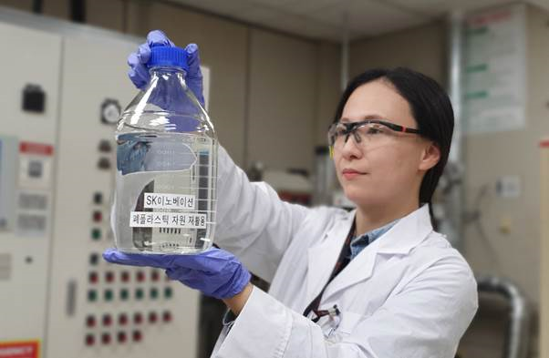 SK이노베이션 기술혁신연구원은 오래도록 쌓아 온 석유화학제품 처리 노하우와 연구개발 역량으로 폐플라스틱에서 뽑아낸 열분해유의 불순물을 대폭 줄여 시험생산 규모로 솔벤트와 윤활기유 등 시제품 제조에 성공했다.