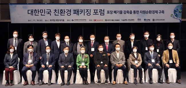 지난 11월 18일부터 이틀간 서울 광진구 소재 워커힐 호텔에서 한국포장학회가 주최한 ‘대한민국 친환경 패키징 포럼’이 열렸다. 이번 포럼은 지난해 SK종합화학이 주최한 ‘플라스틱 패키징 소재 친환경 포럼’에서 진일보했다. 특히 올해는 코로나19로 인한 택배 수요 증가로 대두된 폐플라스틱 문제 해결 필요성을 공감한 정부기관, 학계, 기업들의 참여가 크게 늘며 범 국가적인 포럼으로 확대되었다.
