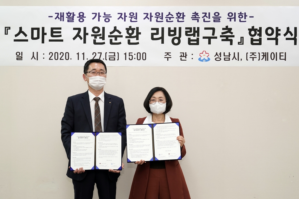 성남시는 지난 11월 27일 케이티와 ‘스마트 자원순환 리빙랩 구축을 위한 업무 협약’을 했다.