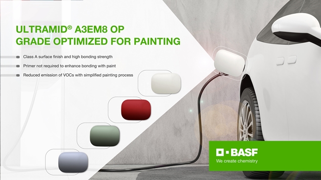 글로벌 화학 기업 바스프가 A급 표면 마감과 강력한 접착 강도로 자동차 부품 도장에 최적화된 새로운 울트라미드(Ultramid®) A3EM8 OP를 출시했다. 도장 과정에서 새로운 울트라미드 등급을 사용하면 페인트의 접착성을 강화하기 위한 프라이머가 필요하지 않다.