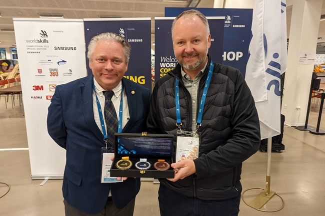 국제기능올림픽 덴마크위원회 부회장 마이클 보아스 피더슨(Michael Boas Pedersen)과 바스프 유럽∙중동∙아프리카(EMEA) 지역 자동차 보수 코팅 솔루션 사업부 총괄 로아르 졸베르크(Roar Solberg) 사장(사진. 바스프)