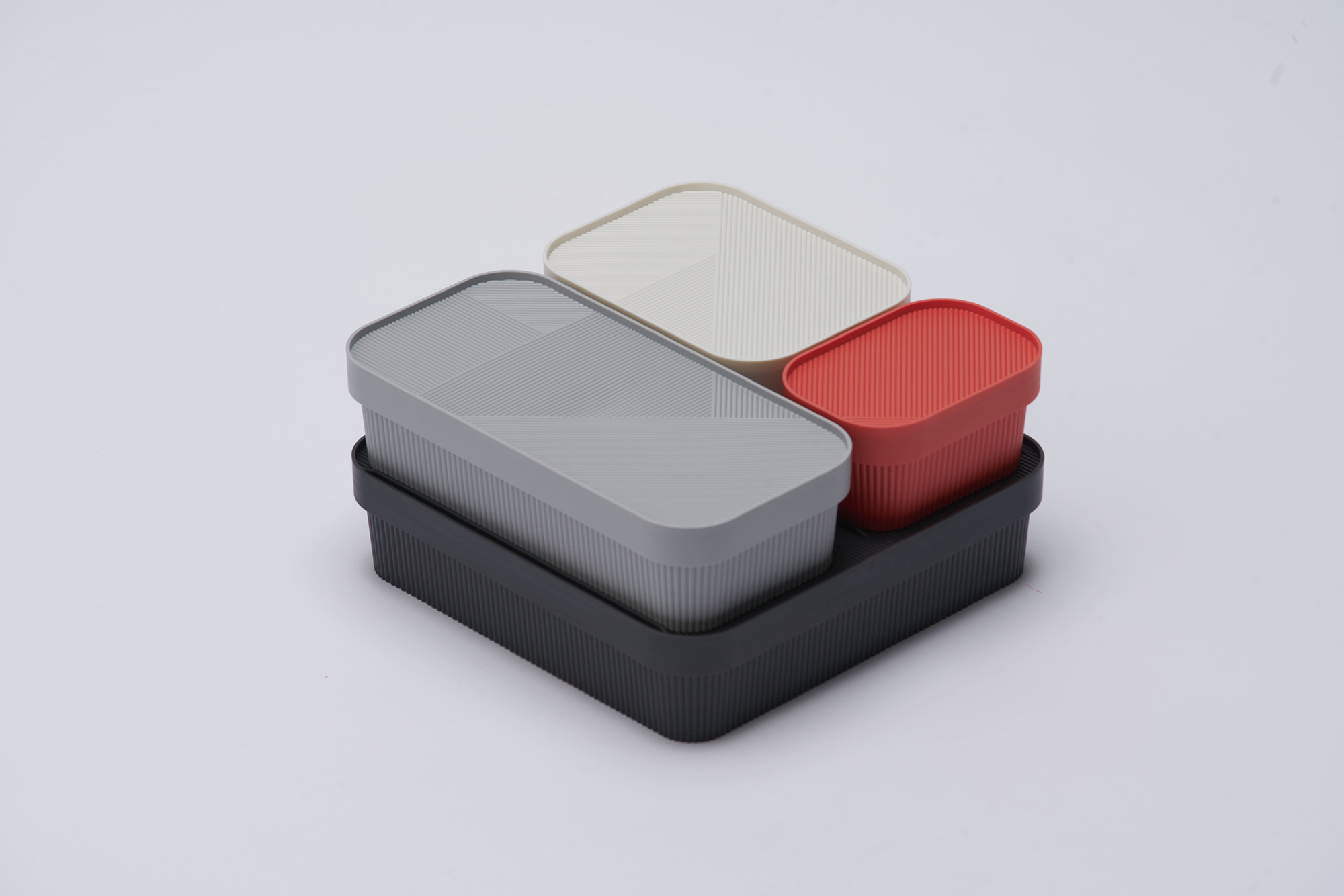 친환경 제품이지만 이용 편의성도 우수하다. 음식을 담기에 편안한 구조로 만들어졌고, 배달 과정 중 음식이 새거나 뒤섞이지 않도록 기능성을 보완했다. 용기 용량별로 색상이 다르게 제작돼 이용 직관성을 높였다. 표면에는 요철 패턴을 적용해 용기의 강도도 보완했다. 특히 100㎖, 400㎖, 700㎖, 1,000㎖ 등 크기와 용량이 다른 사각그릇 4개가 하나의 모듈로 조립되도록 디자인돼 배달용기로서의 활용성과 안정성을 모두 높였다.