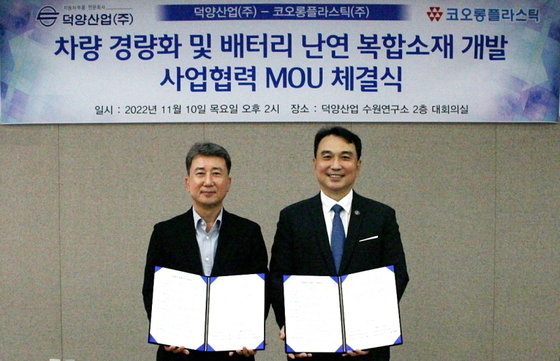 자동차 내장품을 생산하며 부품업계의 선도기업으로 성장하고 있는 자동차 내장부품 및 배터리 모듈 전문기업 덕양산업(주)(이하 덕양산업)이 코오롱플라스틱과 ‘차량 경량화 및 배터리 난연 복합소재 개발’ 사업에 대한 전략적 협력을 위한 양해각서를 체결했다.