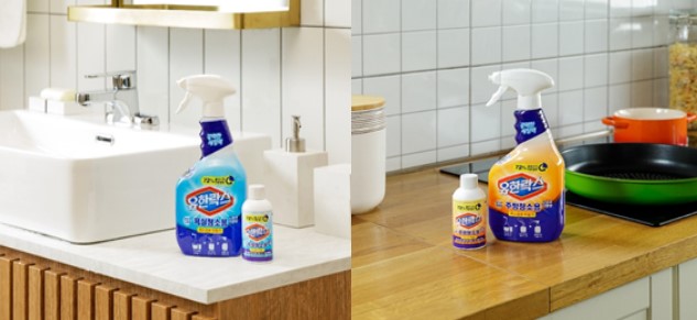 청소용품 브랜드의 대명사인 유한락스가 기존의 스프레이 세정제와 동일한 수준의 강력한 세정력을 제공하면서도 플라스틱 쓰레기 배출량은 72% 줄여주는 유한락스 고농축 리필형 세정제 욕실용과 주방용을 출시했다.