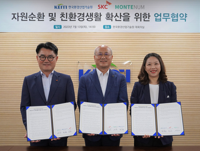 SKC는 지난 7월 13일(목) 환경부 산하기관 한국환경산업기술원(KEITI)과 이 같은 내용을 담은 ‘자원순환 및 친환경생활 확산을 위한 업무협약’을 맺었다고 밝혔다.