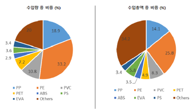 베트남 플라스틱 협회에 따르면, 베트남 플라스틱 산업 전체 원료 수입의 55%를 플라스틱 폴리에틸렌 및 폴리프로필렌 원료 수입이 차지하고 있다. 베트남의 폴리프로필렌 플라스틱 원료 수입량은 코로나19 범유행의 영향으로 2020년 가치가 소폭 하락한 것을 제외하고 2017~2021년 지속적으로 증가했다. 2021년 폴리프로필렌 플라스틱 원료 수입량은 973,000톤으로 최대 12억 달러 규모이다.
