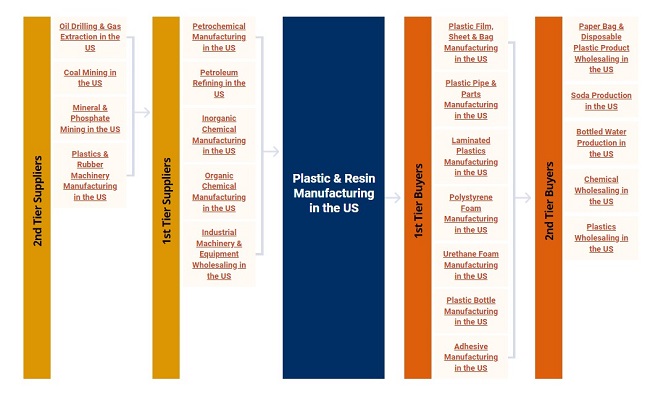 스티렌 중합체를 포함한 미국 플라스틱 수지 생산업 시장의 유통구조 / 자료. IBIS World