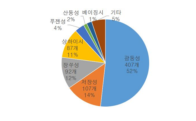 중국 PBT 수입·유통기업 분포 / 자료. 치차차