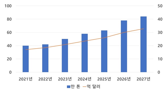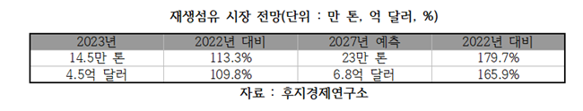 또한, 일본 역시 해당 시장이 급속히 확대되고 있다. 자동차 생산량이 거의 제자리걸음을 하던 2022년에도 재생플라스틱 수요는 증가했다. 일부 재활용 컴파운드 업체는 앞으로 재생플라스틱 생산 능력을 높여갈 것으로 전망돼 글로벌 시장과 비교하면 성장률이 낮지만 일본 시장은 계속 확대될 것으로 예상된다.